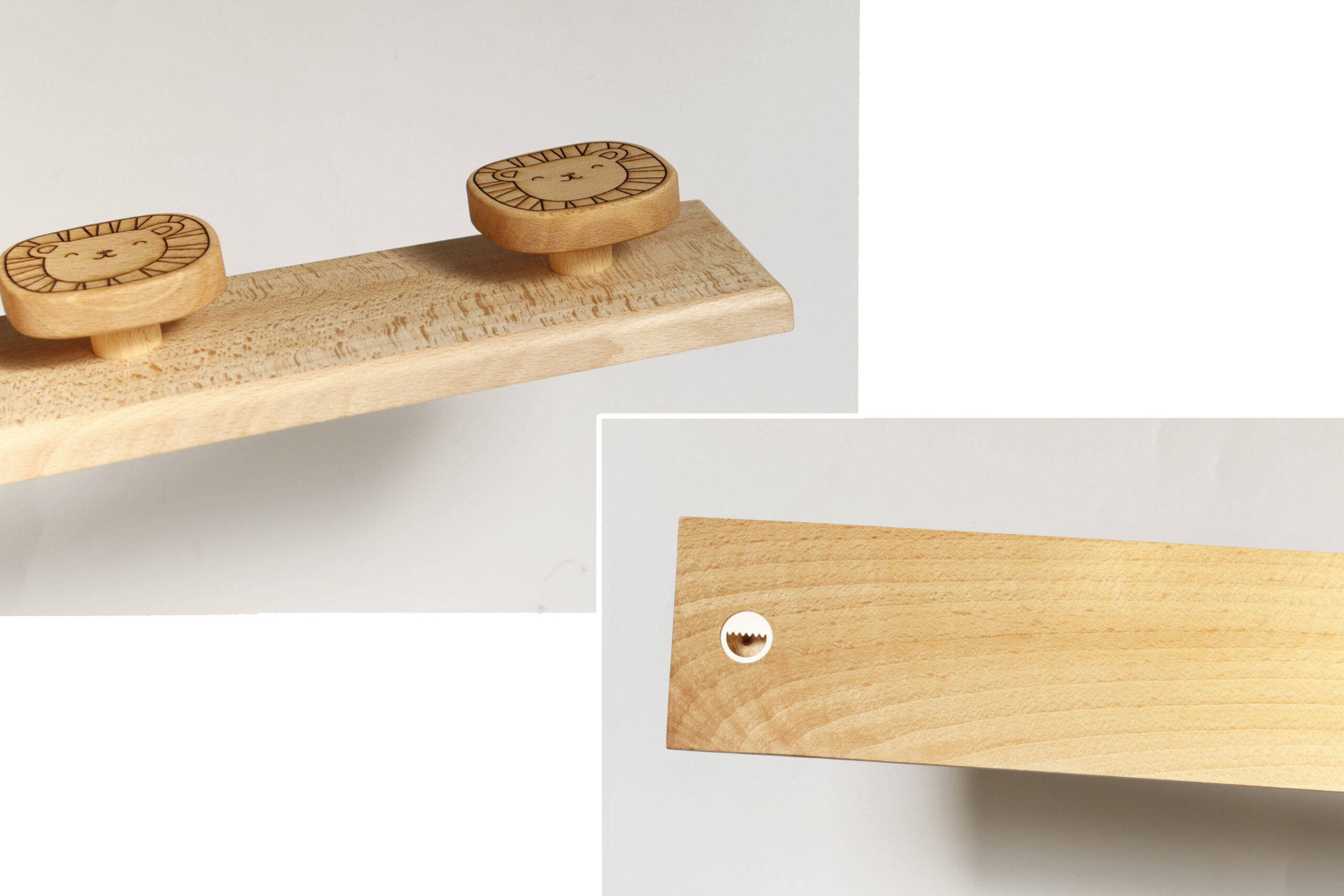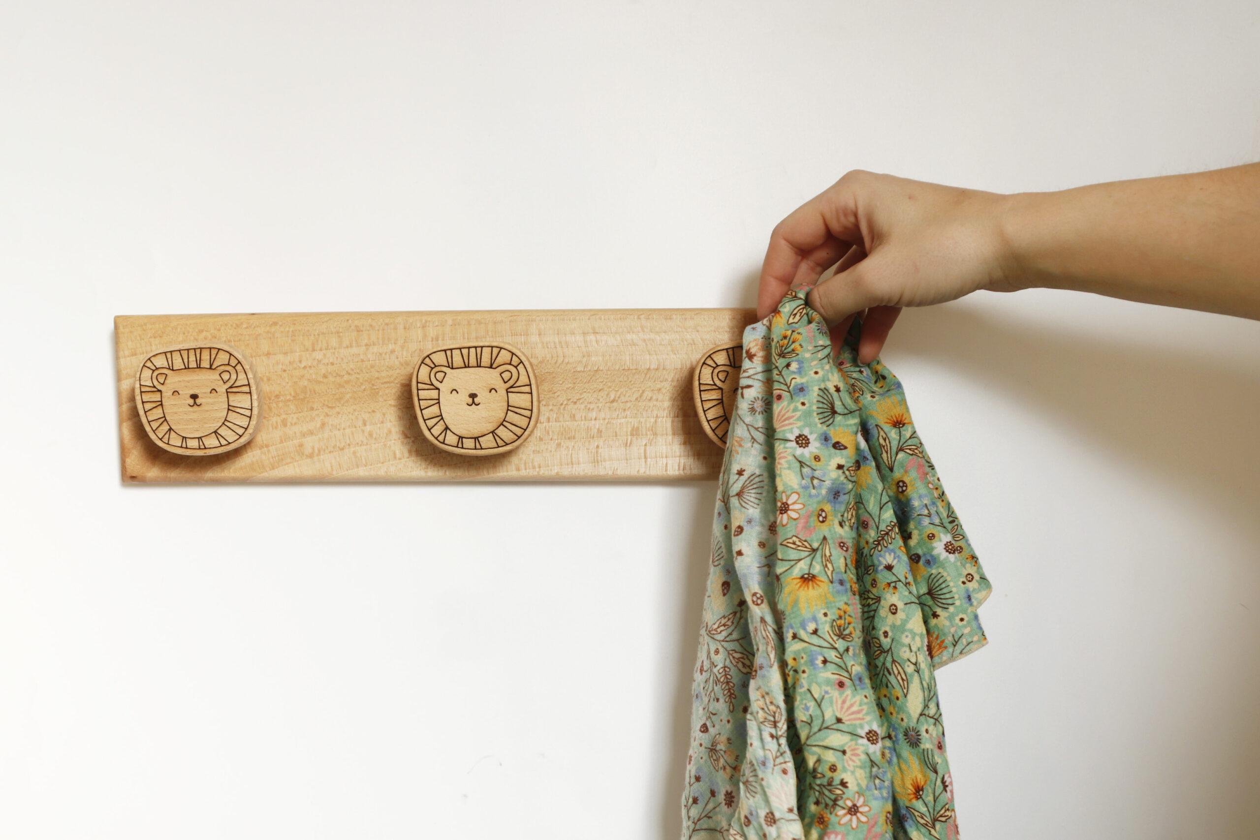 Un encantador y práctico perchero infantil de madera, fabricado íntegramente en madera maciza de haya. Es perfecto para la habitación infantil, el recibidor o el rincón de juegos.