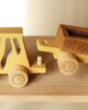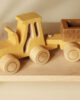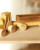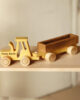 Ce tracteur en bois fait partie d'une collection de sept véhicules en bois fabriqués artisanalement. Chaque modèle de la série possède une forme et un caractère uniques, incitant les enfants à collectionner, combiner et créer leurs propres univers de jeu imaginatifs. Les véhicules peuvent être utilisés individuellement ou ensemble, ce qui rend cette collection idéale pour des jeux libres et créatifs.