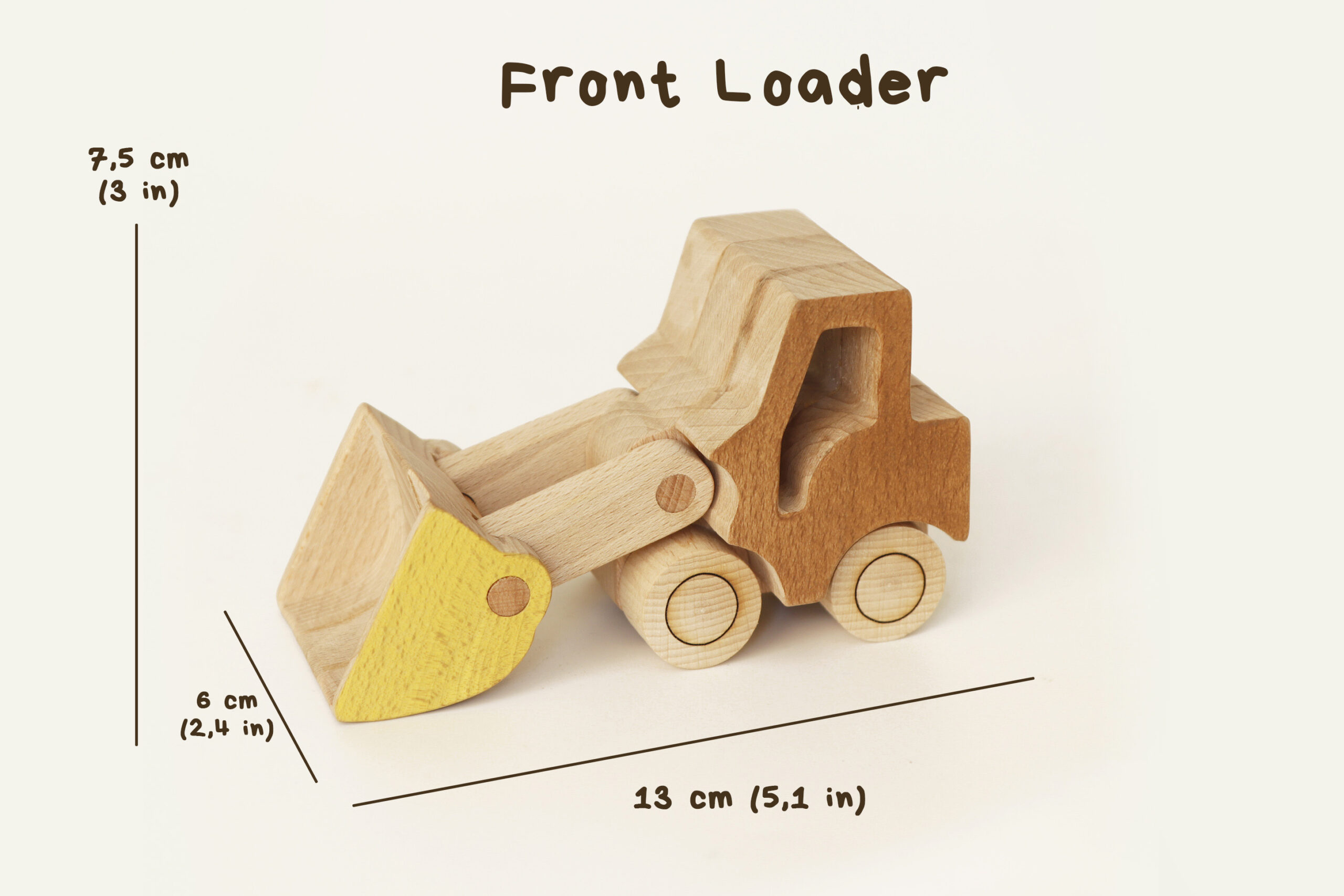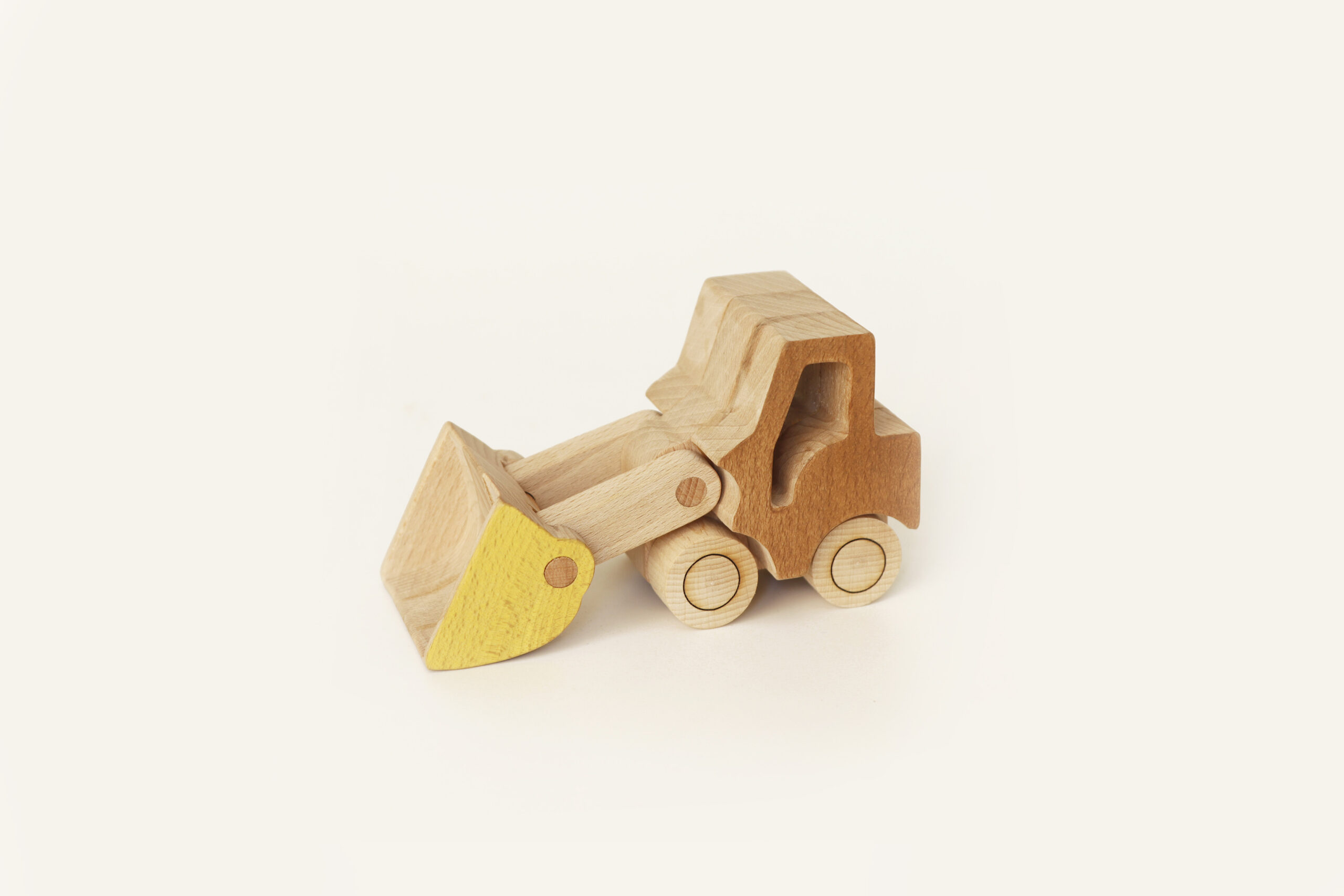 Figurine de chargeur frontal en bois de hêtre massif. Recouverte partiellement d'une cire colorée spécialement conçue pour les jouets d'enfants.